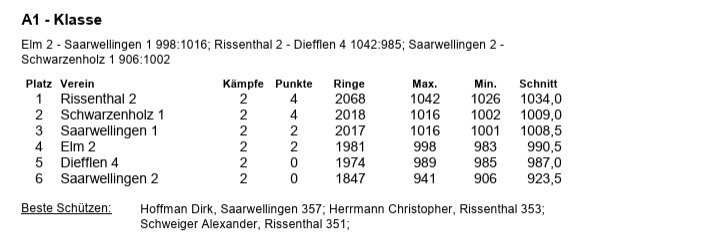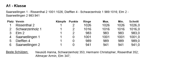 Ergebnisse Rundenkampf Unterhebelgewehr 6. September | ||