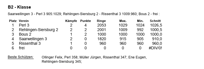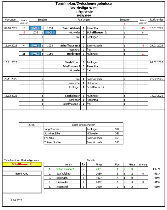 Ergebnisse Rundenkämpfe Luftpistole 18. Oktober | ||
