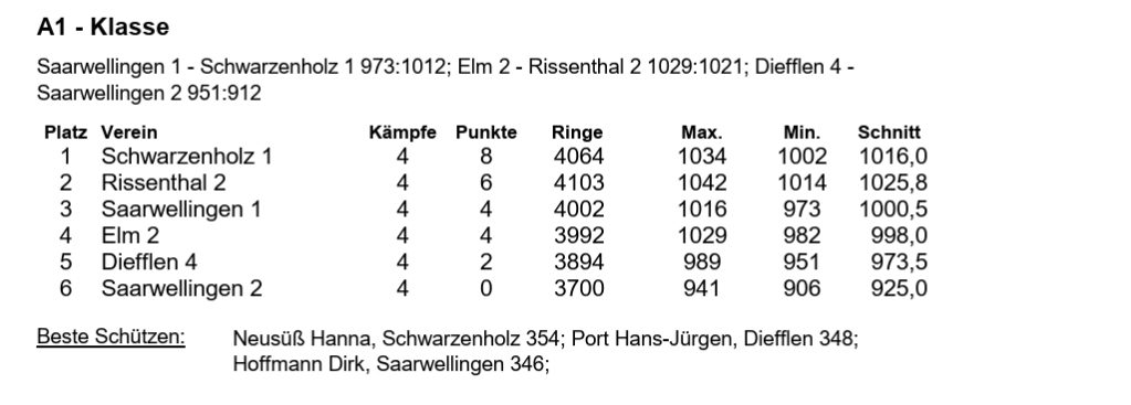 Ergebnisse Rundenkämpfe Luftgewehr 22. November | ||